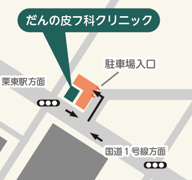 栗東駅方面からお越しの方はクリニックを過ぎて、すぐに左折してください。