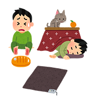 - 湯たんぽ、電気こたつ、ホットカーペットを使用したまま寝ないこと